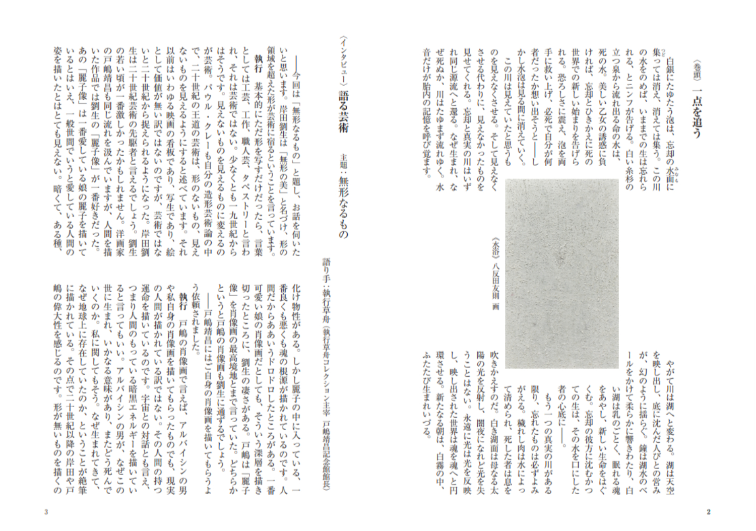 弊館のコレクションを様々な切り口で紹介し、皆さまにご好評いただいている「ARTIS」(ラテン語で芸術の意)の第18号が8月2日に刊行されます。本誌内、執行草舟へのインタビュー企画「語る芸術」の中では、「無形なるもの」というテーマで、形の領域を超えた形である芸術とはいかなるものか語ります。