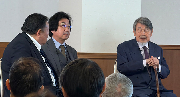 「戦う僕ら小国民」顕彰鎮魂の会 代表 竹本忠雄(右)、発起人 代表 執行草舟(左)